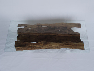 チーク系古材、ステンレス(鏡面仕上げ)、フロートガラスt=10.0 |